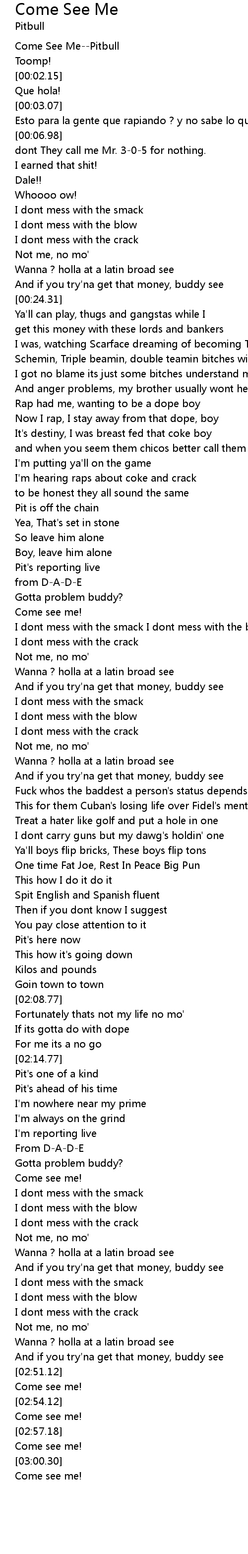 Come See Me--Pitbull |