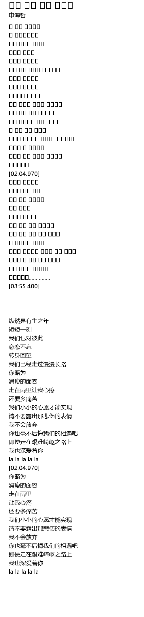 | [01:38.340] | 걸어도 나는 그대를 사랑해요 |
