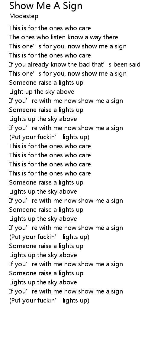 | If you' re with me now show me a sign | |