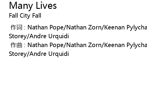 | [00:00.000] | 作词 : Nathan Pope/Nathan Zorn/Keenan Pylychaty/Jordon Storey/Andre Urquidi |