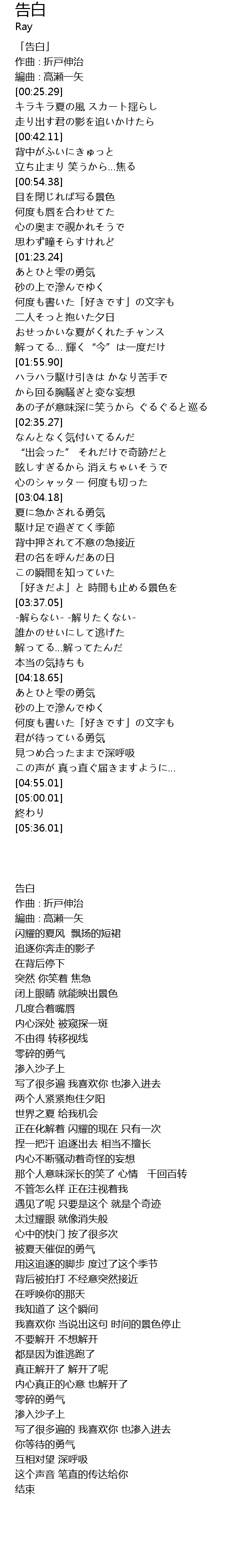 | [00:00.29] | 「告白」 |