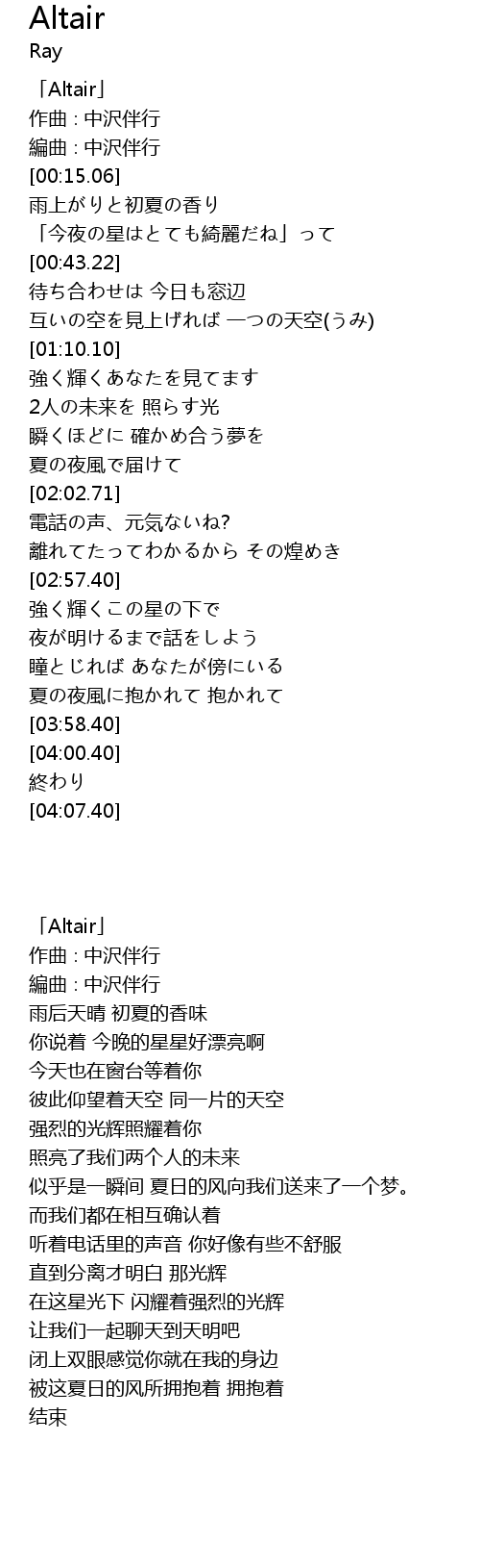 | [03:38.74] | 夏の夜風に抱かれて 抱かれて |