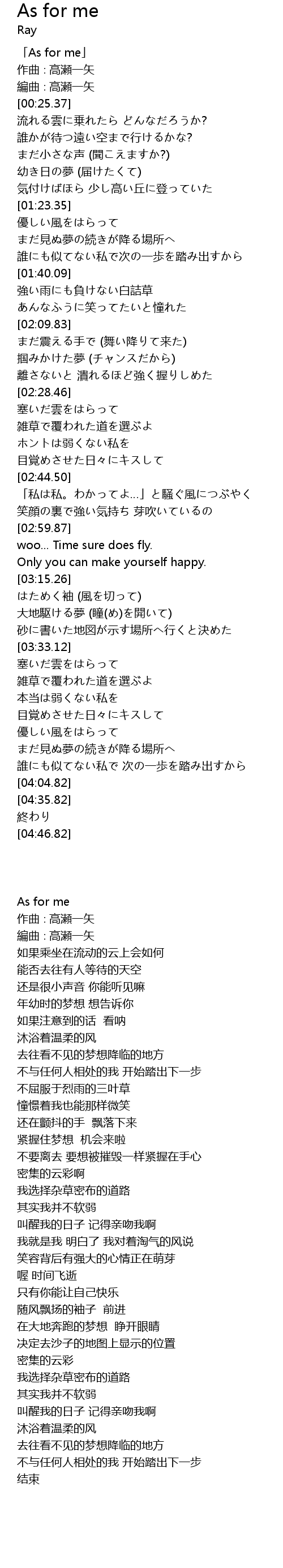 | [00:00.37] | 「As for me」 |