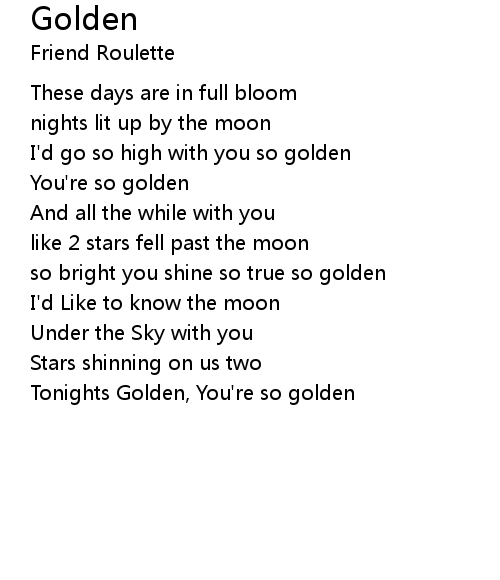 | Tonights Golden, You're so golden |