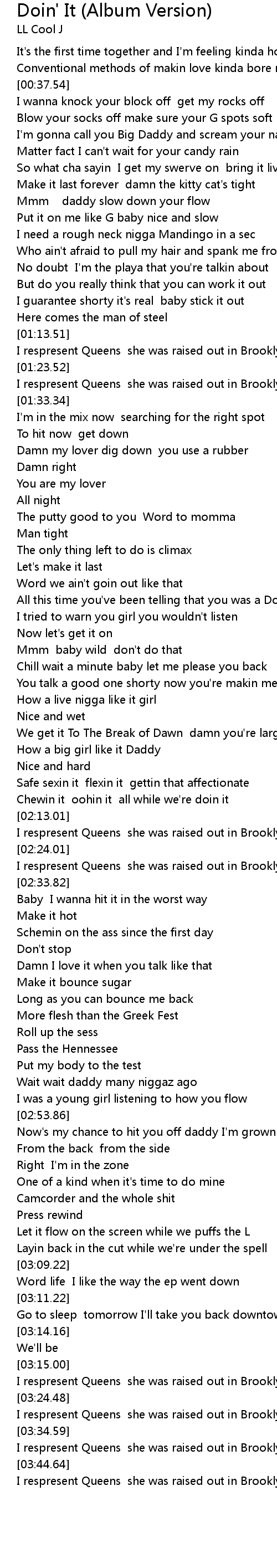 | [02:10.37] | Chewin it oohin it all while we're doin it |