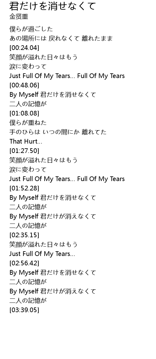 | [01:52.88] | By Myself 君だけを消せなくて |