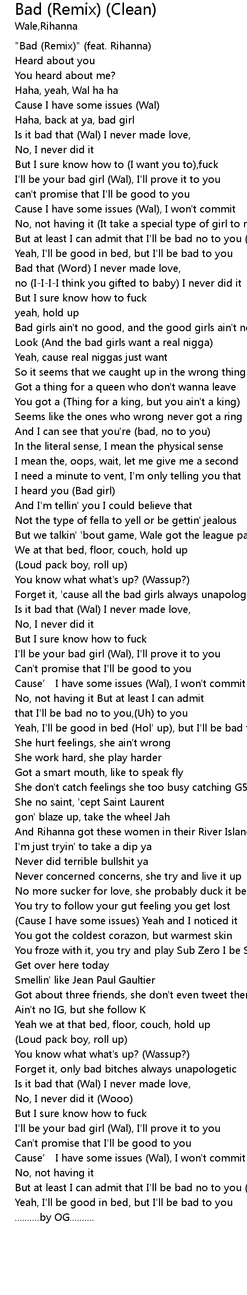 | [00:00.00] | " Bad Remix" feat. Rihanna |