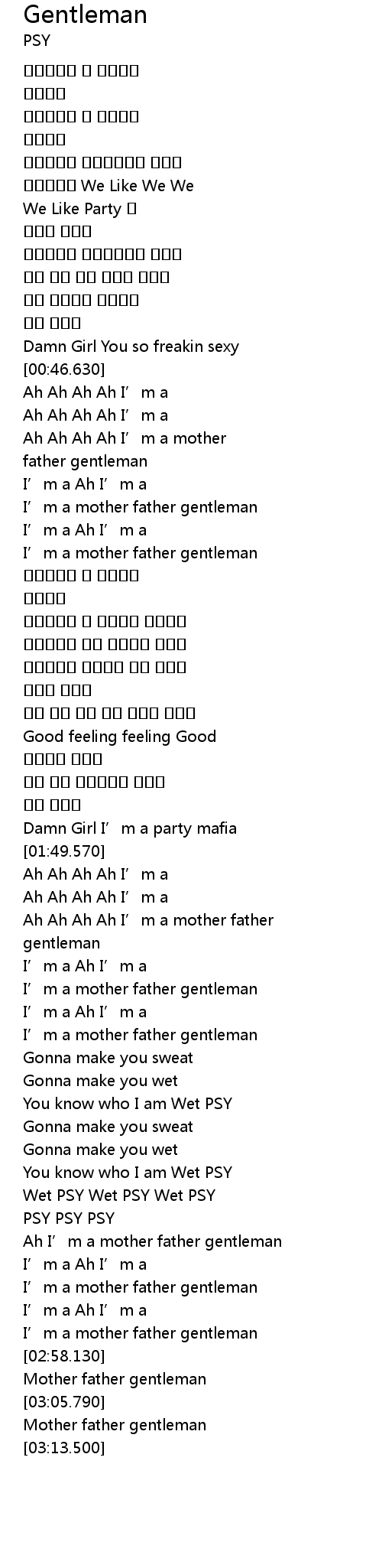 | [02:48.000] | I' m a mother father gentleman |