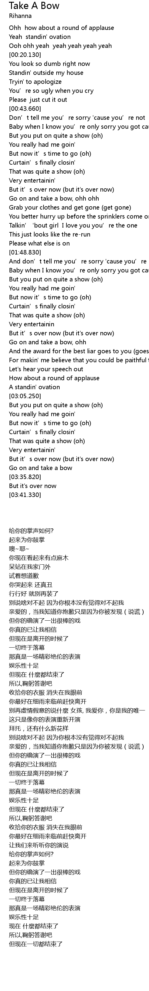 | [01:21.600] | Go on and take a bow, ohh ohh |