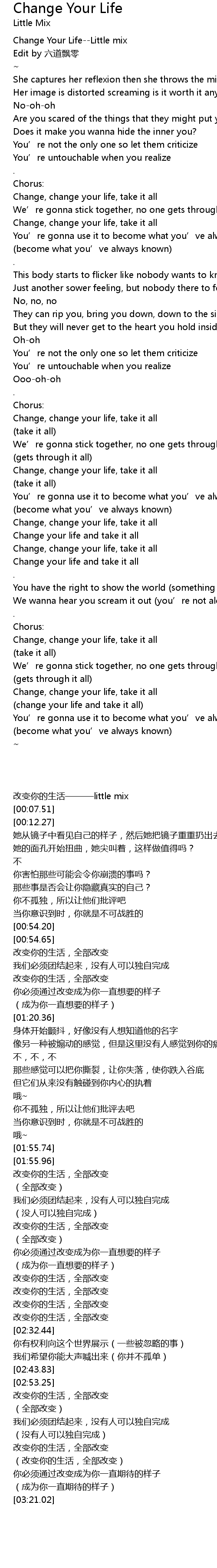 | [00:00.00] | Change Your Life--Little mix |