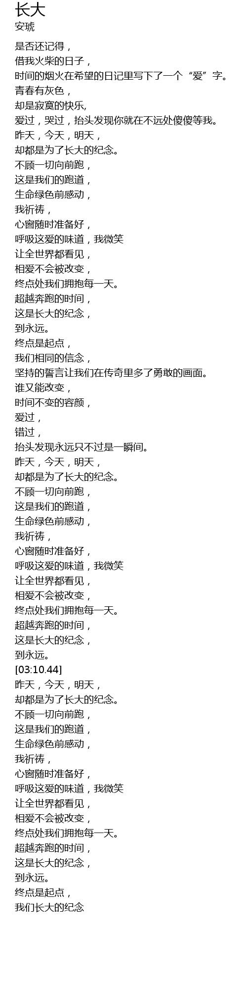 | [03:35.29] | 却都是为了长大的纪念。 |