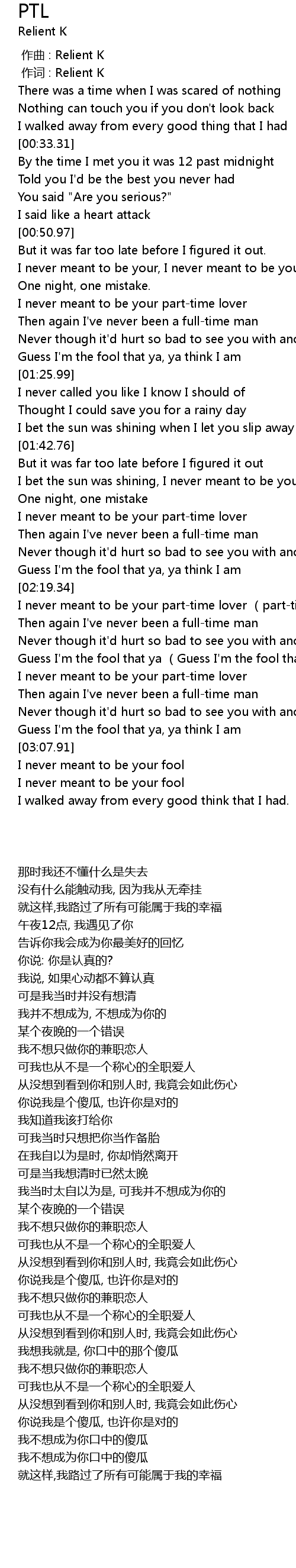 | [02:31.78] | I never meant to be your parttime lover parttime lover |