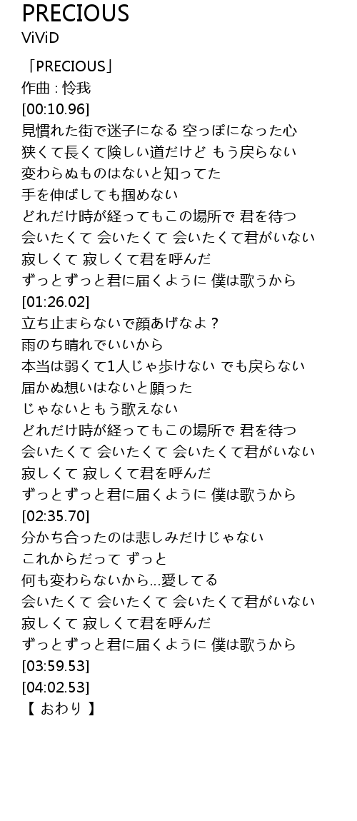 | [00:02.96] | 「PRECIOUS」 |
