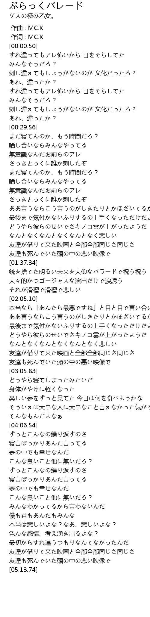 | [02:34.67] | なんとなくなんとなくなんとなく悲しい |