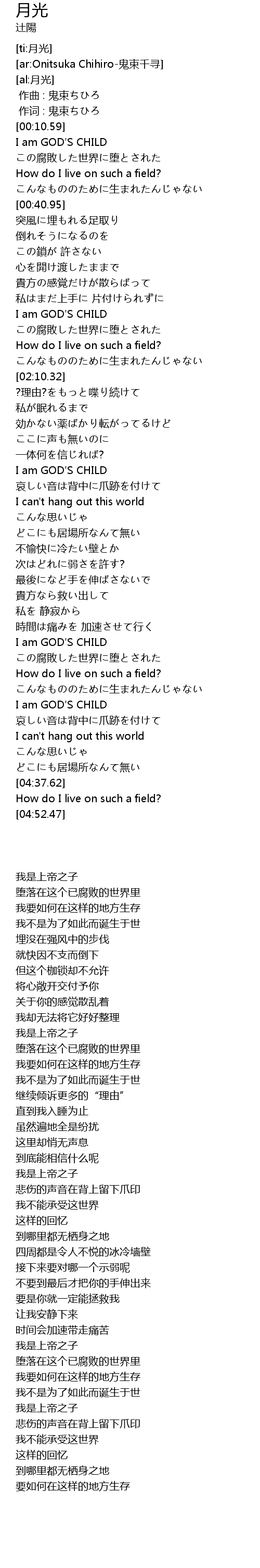 | [02:39.64] | I am GOD' S CHILD |