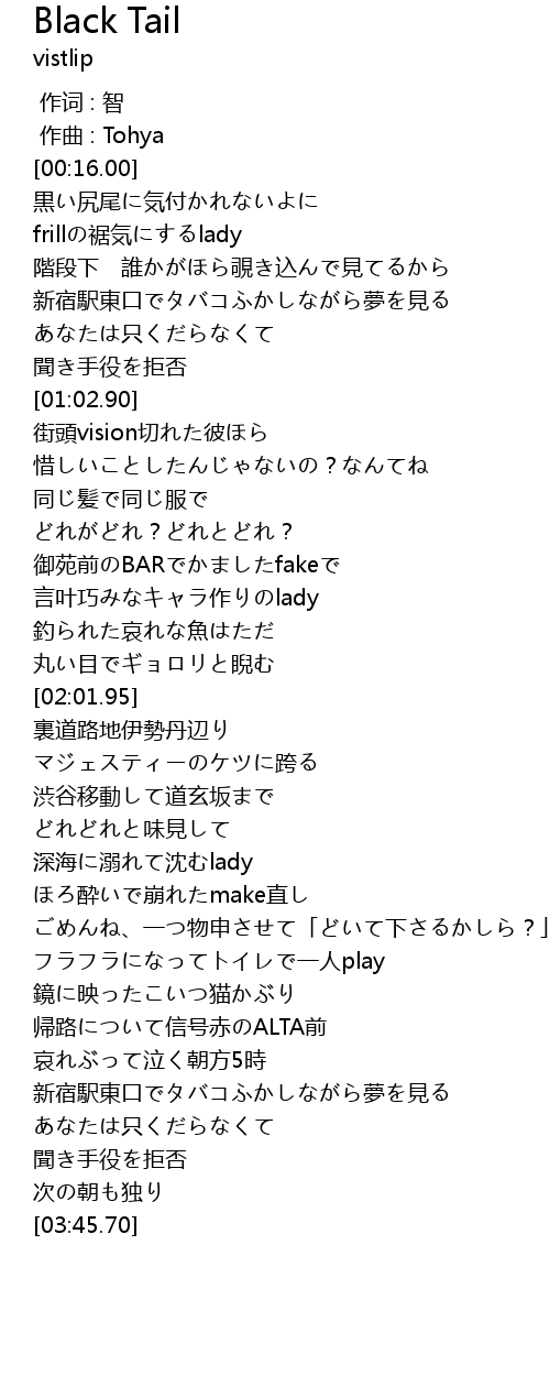 | [00:21.70] | 黒い尻尾に気付かれないよに |