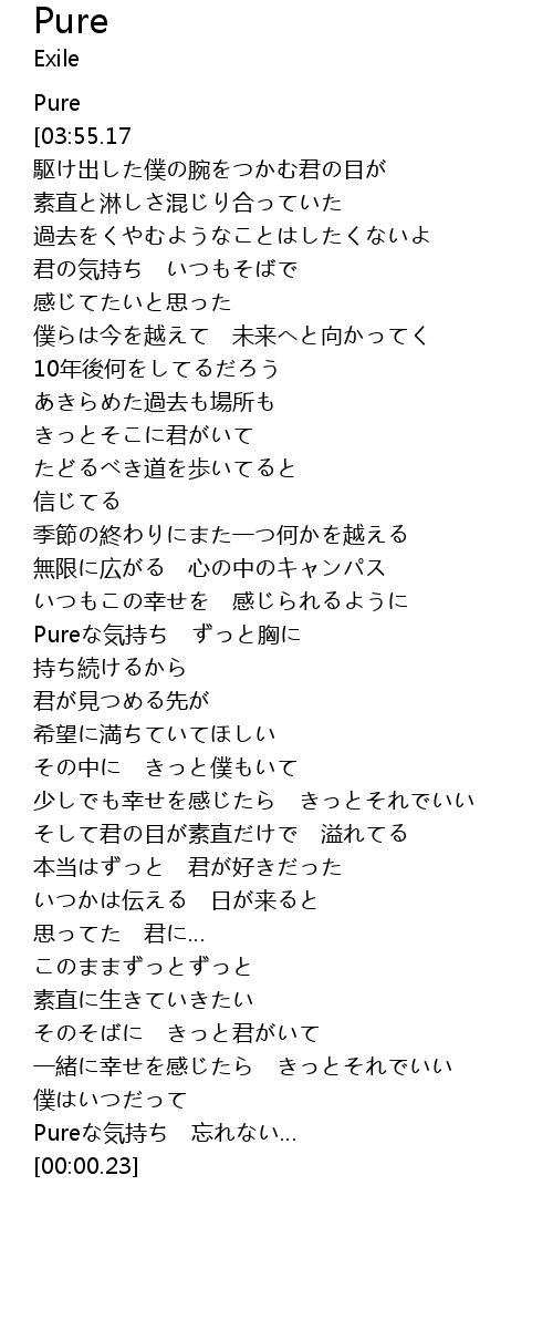 | [03:32.46] | Pureな気持ち 忘れない… |
