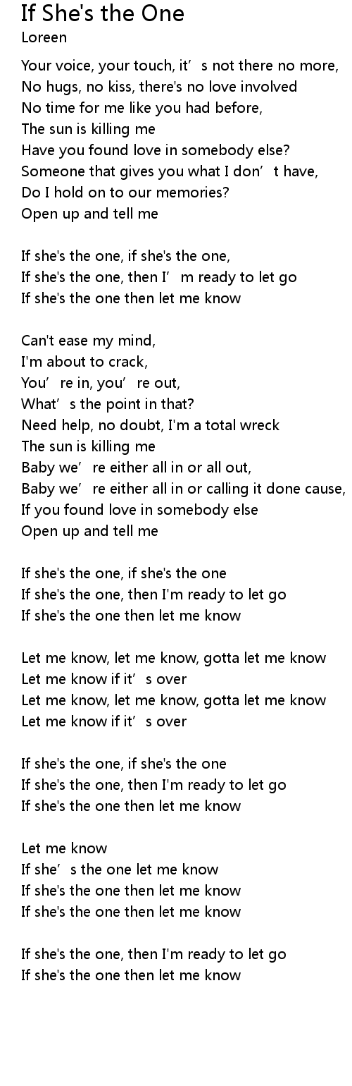 | If she' s the one then let me know | |
