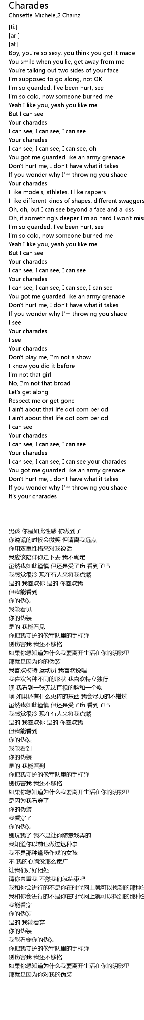 | [03:32.66] | I can see, I can see, I can see your charades |