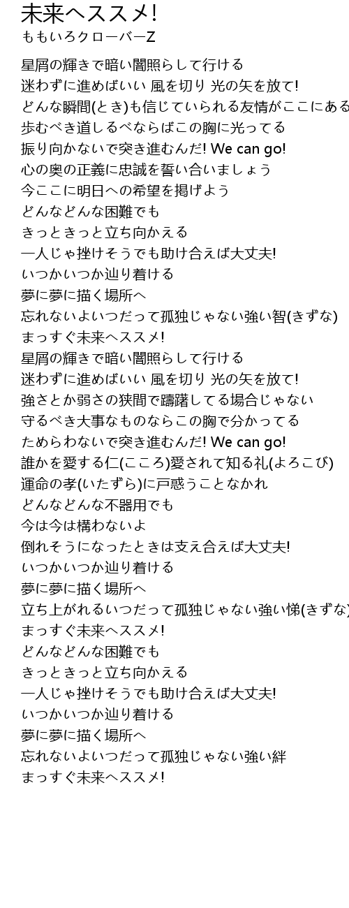 | Song | 未来へススメ! |