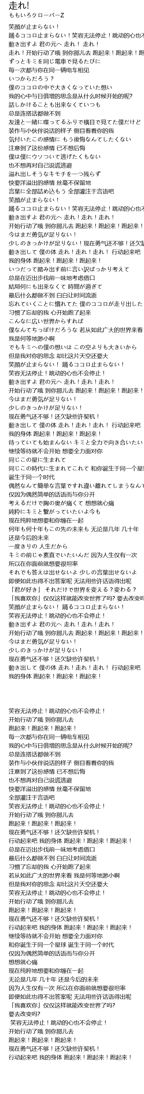 | [00:09.04] | 動き出すよ 君の元へ 走れ! 走れ! 走れ!开始行动了哦 到你那儿去 跑起来!跑起来!跑起来! |