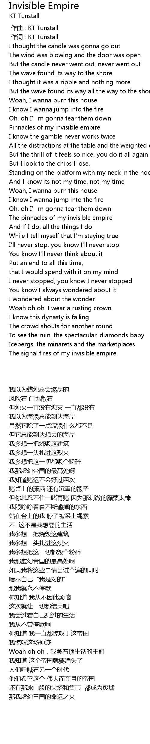 | [00:01.00] | 作词 : KT Tunstall |