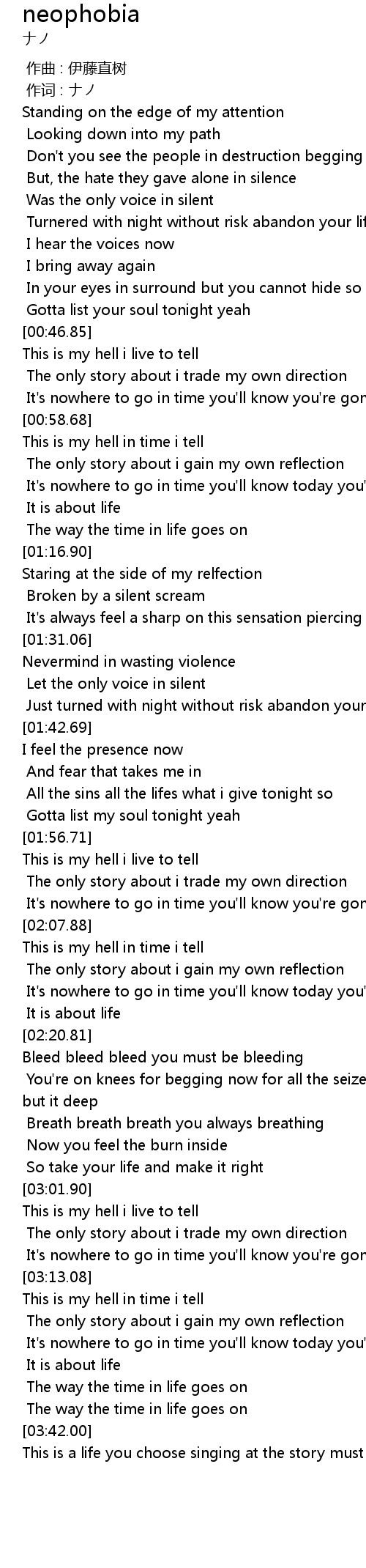 | [00:58.54] | This is my hell in time i tell |