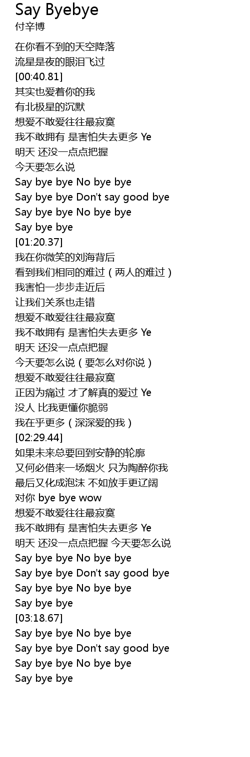 | [03:20.48] | Say bye bye No bye bye |