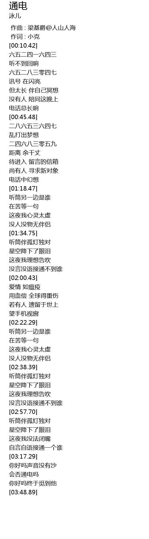 | [03:37.33] | huì fǒu tōng diàn ma |