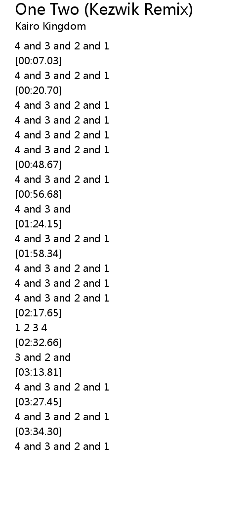 | [00:03.35] | 4 and 3 and 2 and 1 |