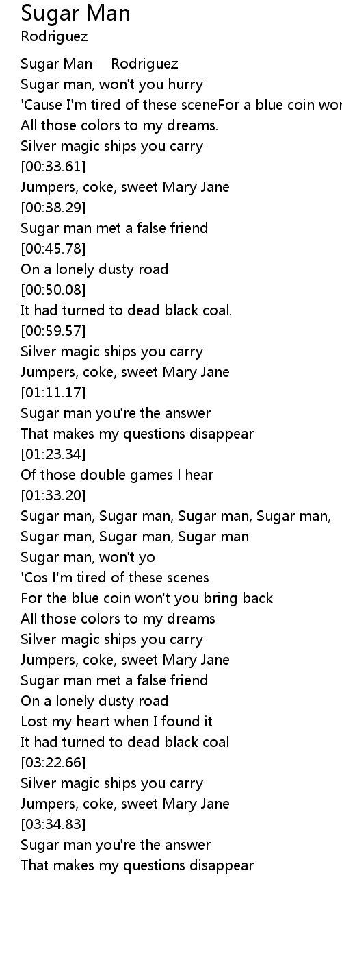 Sugar man, Sugar man, Sugar man, Sugar man, |