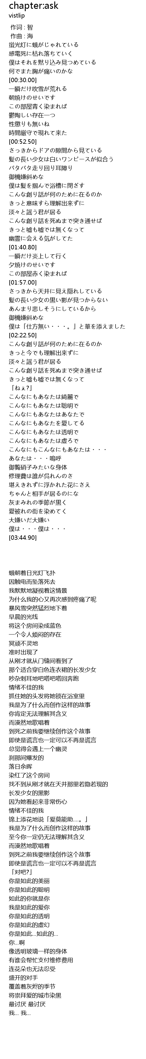 | [03:21.10] | あなたは・・・嗚呼 |