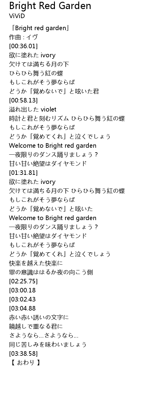 | [00:01.01] | 「Bright red garden」 |