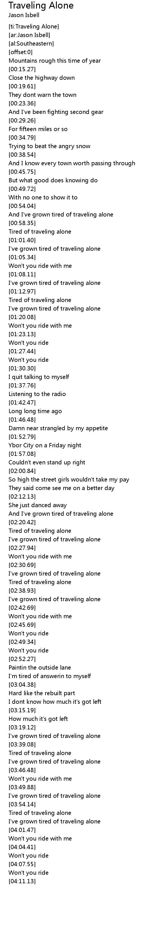 [ti:Traveling Alone] |