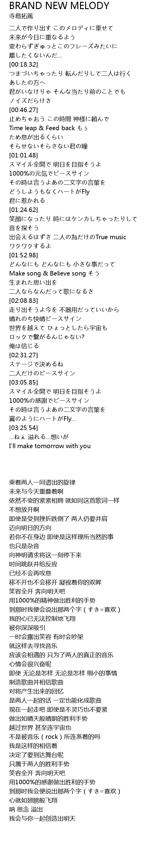 | [01:44.38] | 出会えるはずさ 二人の為だけのTrue music |