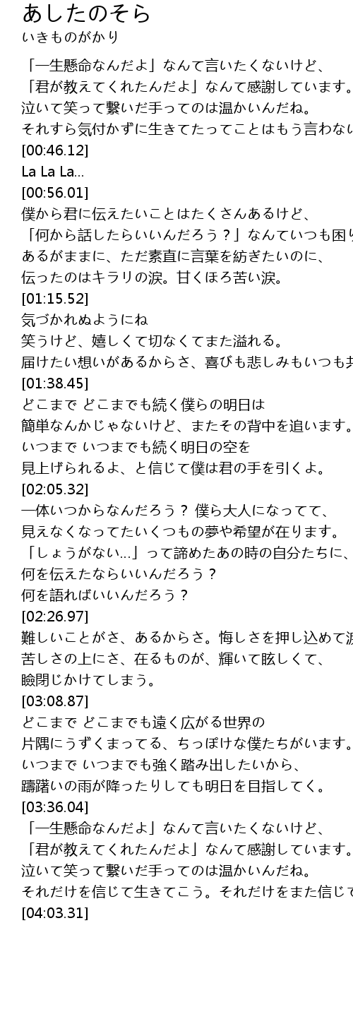 | [01:40.15] | どこまで どこまでも続く僕らの明日は |