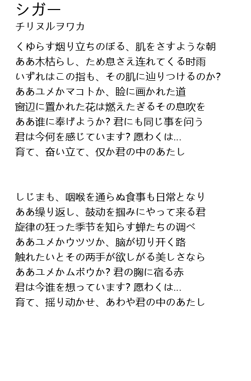 | Song | シガー |