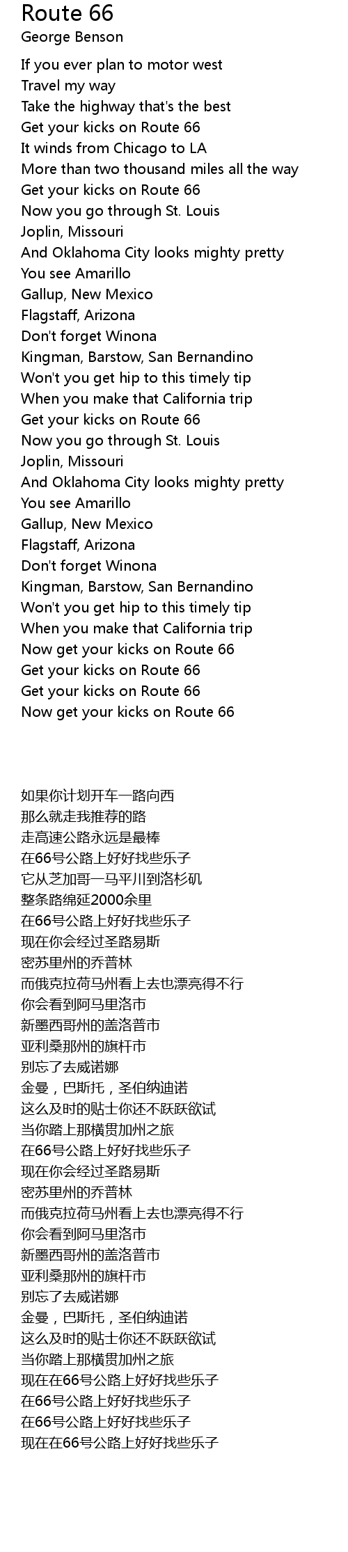 Route 66 Lyrics
