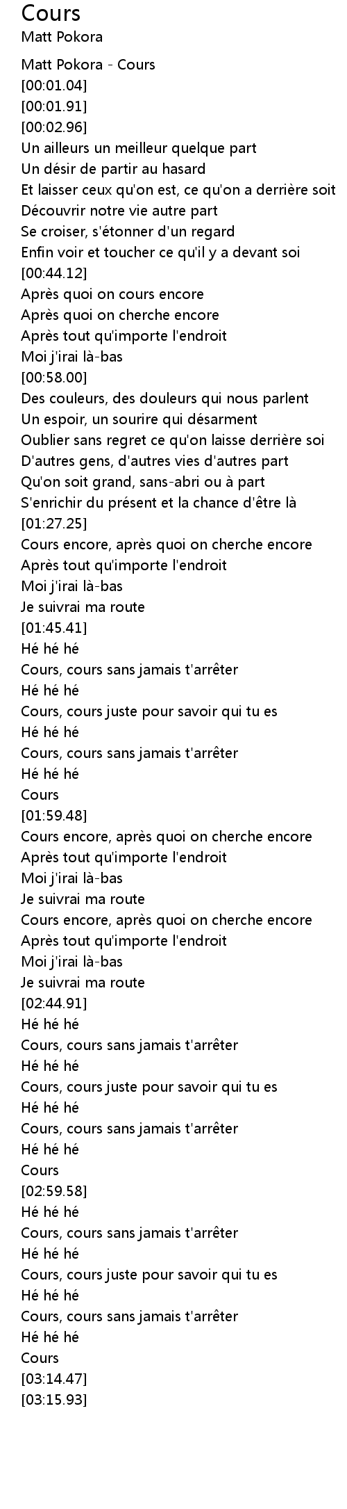 | [02:15.62] | Cours encore, après quoi on cherche encore |