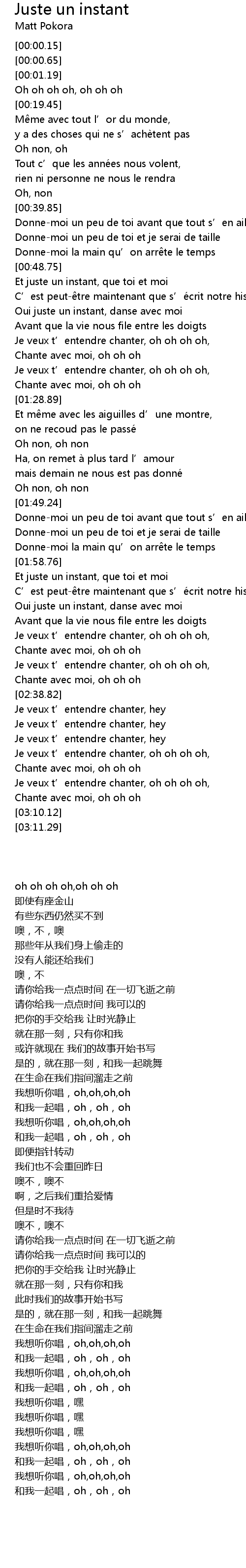 | [02:28.86] | Je veux t’entendre chanter, oh oh oh oh, |