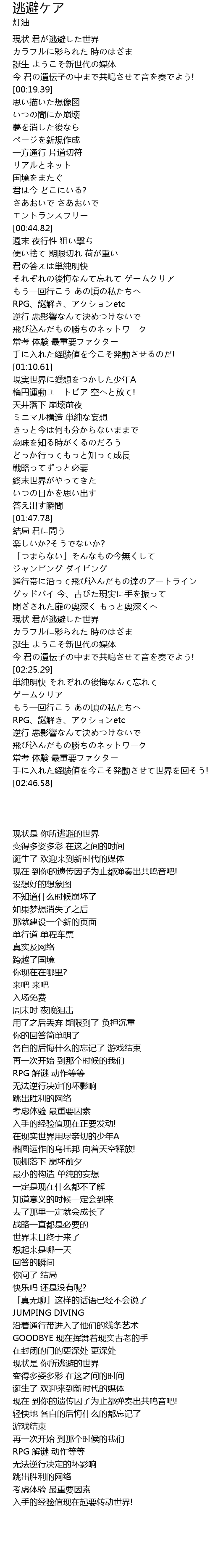 | [00:09.19] | 現状 君が逃避した世界 |