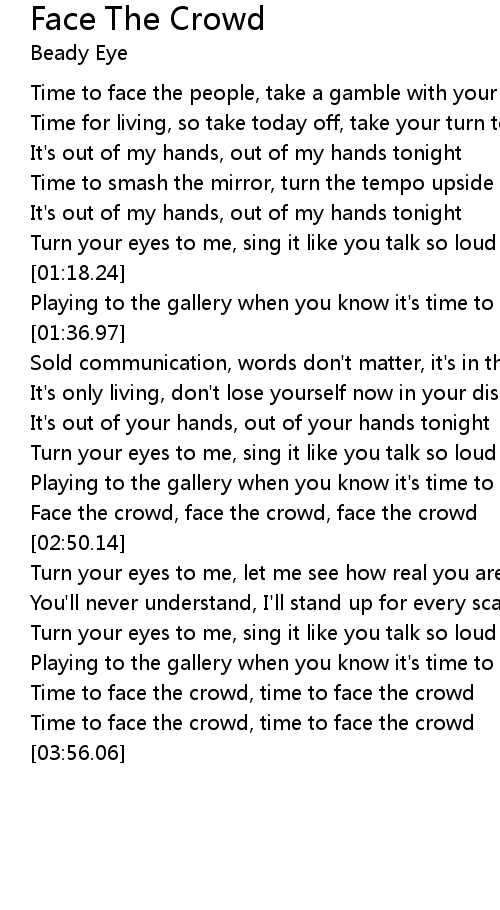 | [02:39.47] | Face the crowd, face the crowd, face the crowd |