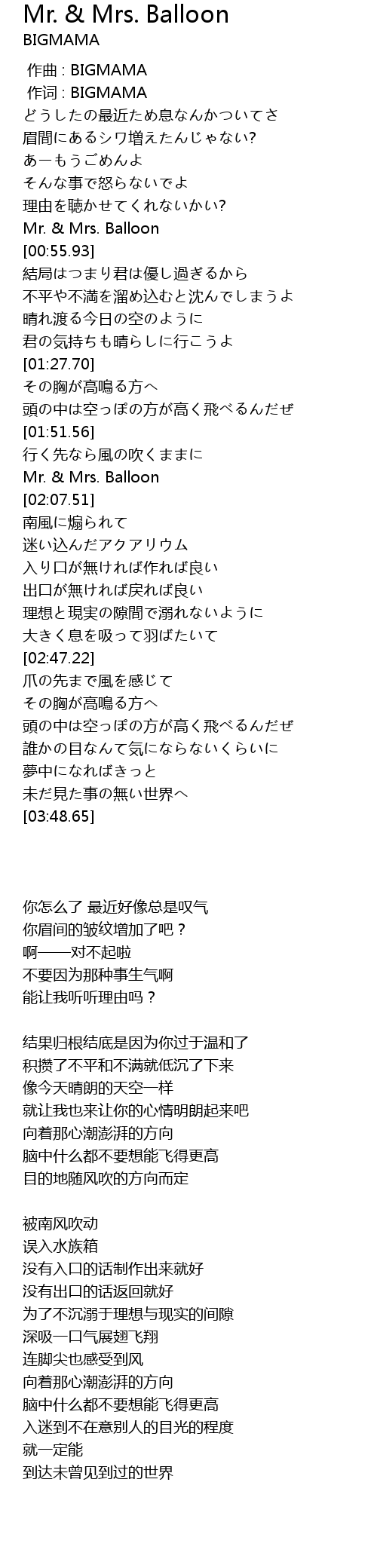 | [01:59.05] | Mr. & Mrs. Balloon |
