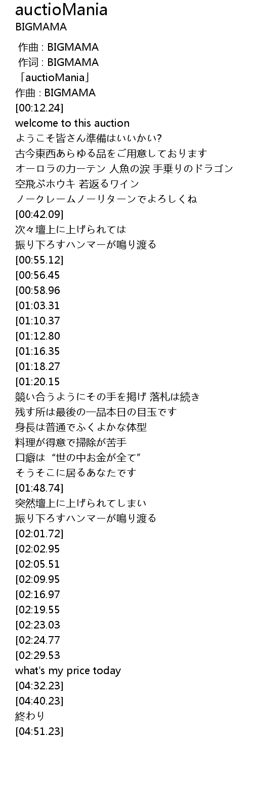 | [03:20.10][00:56.45] | I'm auctioMania |