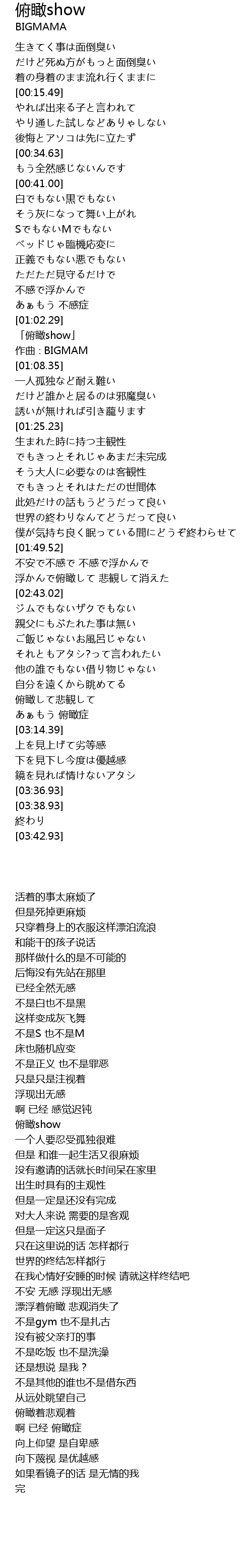 | [00:04.54] | だけど死ぬ方がもっと面倒臭い |