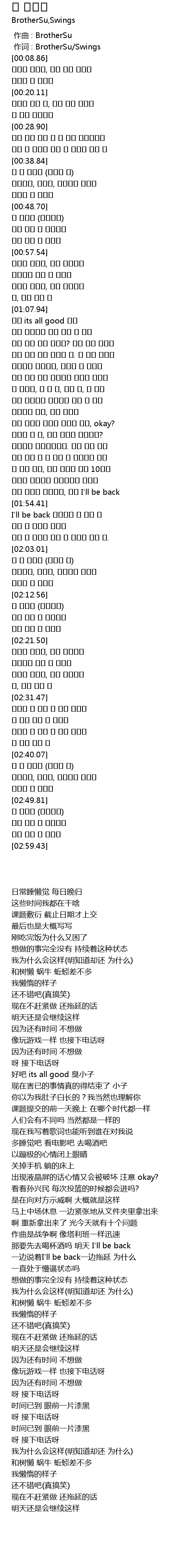 | [00:01.00] | 作词 : BrotherSu/Swings |