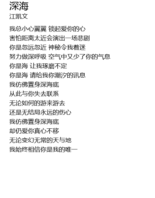 | [01:17.11] | 你是海 让我琢磨不定 |