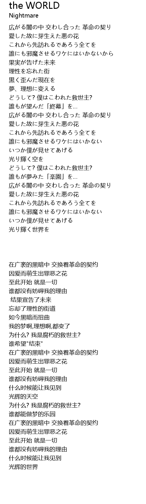 | [01:30.450] | 広がる闇の中 交わし合った 革命の契り |