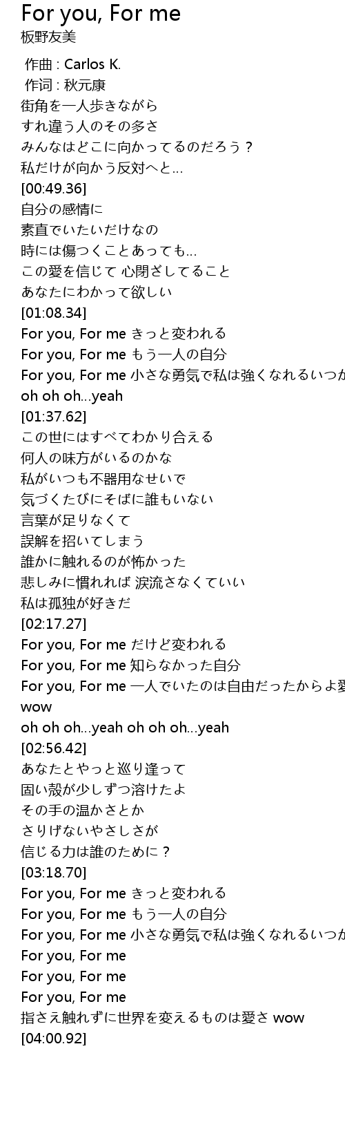 | [02:22.82] | For you, For me 知らなかった自分 |