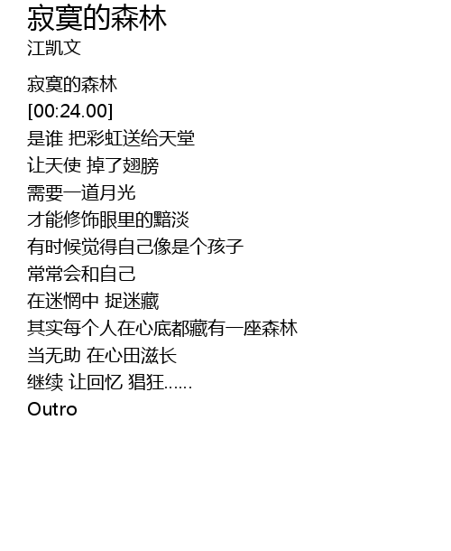 | [00:11.54] | 寂寞的森林 |